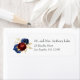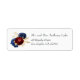 Étiquettes de adresse floraux d'aquarelle rouge pourpre et bleu marine avec feuillage d'or faux feuille et damas en velours vintage inverse.