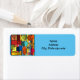Ces étiquettes d'adresses de retour ont un design inspiré Bauhaus de formes et de lignes dans différentes nuances de couleurs modernes du milieu du siècle.
