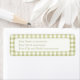 Maison de campagne romantique cabine style coeur style été sauge herbe verte et blanc cassé en vichy checker plaid motif. Avec une zone de texte blanche assortie d'un texte d'adresse de retour entièrement modifiable. Il s'agit d'un motif fixe, mais vous pouvez changer la taille et la position du motif.