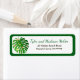 Ce design de vacances amusant et moderne présente une belle feuille tropicale sur la gauche, décorée de lumières multicolores, entourée d'une frontière verte festive avec de minuscules points d'or. Sur le côté droit se trouve un nom et une adresse personnalisables, en vert et noir dans la typographie populaire, que vous pouvez personnaliser. Ce étiquette se marie parfaitement avec les autres objets de la même collection, et il fonctionne aussi bien par lui-même.