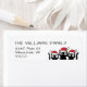 A simple and playful holiday touch for your envelopes. The trio of black-and-white cats in Santa hats brings a lighthearted Christmas feel, and the clean layout keeps your address front and center. Customize the text with your family name and address for easy use on Christmas cards and holiday mail.