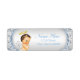 Étiquettes de adresse de baptême d'ange avec mignon bébé ange garçon sur un joli bébé arrière - plan bleu et gris tourbillon. Vous pouvez ajouter le texte de votre choix dans le style de police que vous préférez.
