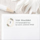 Les étiquettes d'adresse de retour élégantes pour vos cartes de Noël ou la correspondance de saison des Fêtes comprennent votre monogramme initial unique, entouré d'un cadre géométrique de feuille d'or imitant accentué de feuillage vert aquarelle et de baies rouges. Personnalisez avec votre nom et renvoyez les coordonnées à droite. Conçu pour coordonner avec notre collection de vacances Gemstone.