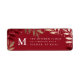 Une élégante étiquette d'adresse de retour de vacances avec des branches de pin dessinées à la main dans une palette festive d'or et de couleur rouge de Noël conçue par Stacey Meacham.
