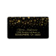 Étiquette d'adresse de retour noire avec flocons d'or.