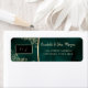 Elegant gold swirls, and gold line on an emerald green background. Customize with your name and address details.