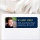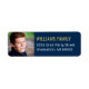Le design moderne personnalisé étiquette de adresse comprend une photo de graduation du diplômé avec l'or et blanc adresse de retour texte et bleu marine foncé arrière - plan. Customisez le texte et les couleurs de l'arrière - plan pour coordonner avec la photo ou les couleurs de l'école / de l'université!