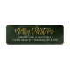 Étiquettes d'adresse de retour imprimées personnalisées pour coordonner avec notre collection de vacances Merriest. Cet élégant design présente un arrière - plan d'aquarelle vert forêt avec écriture manuscrite Joyeuse typographie de Noël en fausse feuille d'or. Personnalisez-le avec votre nom et votre adresse de retour ou tout autre texte personnalisé. Utilisez les outils de conception pour modifier les polices de texte et les couleurs ou télécharger vos propres photos pour créer une étiquette d'adresse de retour de vacances unique.