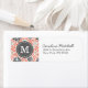 Étiquette Grey and Coral Floral Damask Adresse de retour