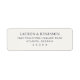 Cette étiquette d'adresse de retour présente un design épuré et minimaliste avec un texte centré sur fond blanc. La mise en page est simple et élégante, utilisant une police sans-serif moderne de couleur gris foncé pour plus de clarté et de sophistication. Chaque ligne de texte est espacée de manière régulière, créant une présentation équilibrée et ordonnée qui dégage du professionnalisme et du raffinement. Idéale pour les occasions formelles ou les contextes professionnels, cette étiquette allie fonctionnalité et aspect esthétique agréable.
