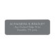 Cette étiquette d'adresse de retour présente un design épuré et minimaliste avec un fond gris uni et un texte blanc net. La mise en page est simple mais élégante, mettant en valeur une composition centrée avec un espacement généreux pour une lisibilité facile. La police sans-serif moderne ajoute une touche contemporaine, ce qui la rend parfaite pour les occasions officielles ou l'usage quotidien. Son style sophistiqué transmet la clarté et la précision, idéal pour ceux qui apprécient l'élégance discrète dans leur papeterie.