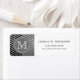 motif de chevron de zigzag cool, gai et blanc et géométrique, mignon, avec plaque d'identification grise pour votre lettre initiale monogramme personnalisée. Chic monogrammed étiquette de adresse moderne.