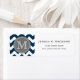 motif de chevron de zigzag bleu et blanc cool à la mode géométrique avec plaque grise pour votre lettre initiale monogramme personnalisée. Chic monogrammed étiquette de adresse moderne.