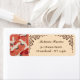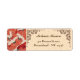 Motif japonais de grues cou rouge, brûlé orange kimono tissu art retour adresse étiquette avec typographie moderne.