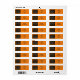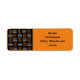 Ces étiquettes d'adresses de retour ont un design moderne du milieu du siècle qui ressemble à un tissage avec des lignes orange et blanche sur un champ de noir.