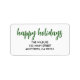 Les grandes étiquettes d'adresse de retour comprennent Happy Holidays en texte vert et vos informations en lettres blanches chic.