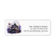 Cette étiquette d'adresse de retour éffrayante-amusante dispose d'une maison aquarelle hantée. avec chauves-souris volantes C'est la façon parfaite de faire savoir à vos amis et votre famille où vous vivez pour Halloween.