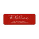 Étiquettes d'adresse de retour modernes avec un design simple avec votre nom dans un grand format de police manuscrite en blanc sur un arrière - plan rouge. La police élégante de votre nom donne à ces adresses de retour minimalistes une touche chic.