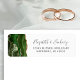 Le bord gauche de cette élégante étiquette d'adresse de retour mariage moderne comporte une bordure d'aquarelle verte chasseur, recouverte d'une parties scintillant en faux or. Le texte personnalisable combine écriture manuscrite et police de caractères cuivre en gris charbon sur un arrière - plan blanc.