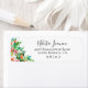 Aquarelle fleurs d'île botanique et arrangement de feuillage dans les tons pêche, corail, rose et vert, retour adresse étiquette. Personnalisez/Customisez le texte, le style de police, la couleur et la taille.
