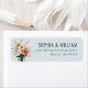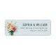 Cette étiquette d'adresse de retour présente un design minimaliste avec un fond bleu clair et une illustration d'un bouquet floral dans un vase, mettant en valeur des roses pêche, des roses blanches, des pivoines orange et du feuillage vert. Le style moderne et élégant est renforcé par l'utilisation de couleurs pastel douces et de techniques de peinture numérique lisse, créant une ambiance sereine et sophistiquée. Le texte est disposé de manière soignée sur le côté droit dans une police serif grasse pour les noms et un poids plus léger pour l'adresse, assurant la clarté et l'équilibre. Parfaite pour les occasions formelles, cette étiquette combine l'attrait visuel et la praticité, ce qui la rend idéale pour ceux qui apprécient l'élégance discrète.