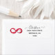 Infinity symbole of continuous stream of red pouring into glass glass glass on white background.