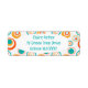Ces étiquettes d'adresses de retour ont un design moderne du milieu du siècle de cercles concentriques en or, orange et turquoise sur un arrière - plan blanc.