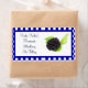 Ce joli étiquette est parfait pour utiliser vos conserves ou jarres maison personnalisées. Le étiquette est encadré dans une bordure à carreaux bleu et blanc. Le centre est blanc avec un mûrier sur le côté droit. Tout le texte est personnalisable.