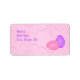 Un oeuf de Pâques rose orné pond sur son côté devant un oeuf de lavande orné droit sur un arrière - plan rose texturé sur des étiquettes de adresse.