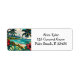 Étiquette d'adresse de retour personnalisée sur le thème de l'île. La bande dessinée pop art Hawaiian Island. Vacances ou déplacements à thème d'adresse autocollants.