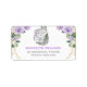 Cette adorable étiquette d'adresse de retour présente des roses mauves, une verdure élégante et un joli petit éléphant.