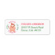 Il s'agit d'une étiquette d'adresse de retour mignonne qui apportera un sourire pendant la saison des Fêtes. On y voit une image d'un petit cochon rose qui danse habillé d'un chapeau de Père Noël rouge et blanc. Un petit oiseau perche sur le casquette, et le cochon tient un tourbillon de menthe poivrée. Le texte en rouge et vert autour du bord dit "Amour Espoir Paix Joy". Votre texte personnalisé est en rouge et vert à droite.