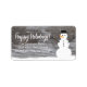 Custom Simple Rustic Wood Snowman Vacances Adresse de retour Label. Personnalisez le texte. Ce petit imprimé rustique d'hiver ou de Noël présente un bonhomme de neige dessiné avec un chapeau haut et du bois rustique en détresse dans l'arrière - plan. Parfait pour customiser pour un usage personnel ou pour mettre votre nom d'entreprise sur.