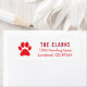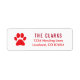Joli, simple rouge empreinte de patte sur le thème chien l'étiquette d'adresse de retour conçu pour correspondre à nos cartes de Noël multi-chien vilain ou joli.