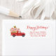 Étiquette Joyeuses fêtes Chiens de Noël en Camion Rouge Vint