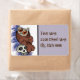 Cheval Crâne~Étiquette de adresse Chouette rayée perchée sur un crâne, art original pour envoyer des voeux d'Halloween adorables! Copyright artistique à Erin Cooper