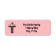 Étiquette Joyeux Noël crèche croix rose