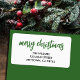 Les grandes étiquettes d'adresse de retour comportent Joyeux Noël en texte vert et vos informations en lettres blanches chic.