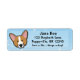 Cardigan blanc et rouge mignon Corgi gallois retourner les étiquettes d'adresse pour les amoureux de les chiens! Le design bleu scintillant a un dessin de la race de chien sur la gauche, et vous pouvez instantanément ajouter toutes vos propres informations, imprimées sur la droite.