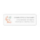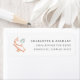 Zen chic return address labels feature elegant charcoal gray lettering with a pale orange koi fish and spring green aquatic leaf illustration. Designed to coordinate with our Koi Pond wedding collection.