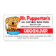 Cute, chien heureux ou chiot avec un bol de nourriture sur ce produit étiquette pour un chef de cuisine pour animaux de compagnie, gâteries maison pour chien ou nourriture saine pour chien, personnalisée avec votre choix de polices et de couleurs partout.