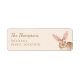 L'illustration fantaisiste à l'aquarelle de Destei représentant un lapin brun avec des oreilles extra larges. Il y a également deux zones de texte personnalisables idéales pour un nom et une adresse. La couleur de fond est beige.