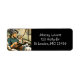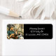 Étiquettes d'adresse de retour personnalisées. Une jolie dame se reposant dans sa chaise Papasan confortable lisant un livre, buvant du café avec un mignon chat noir et blanc qui dort sur ses genoux.