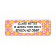Ces étiquettes d'adresse de retour ont une conception géométrique de triangles roses et oranges extensibles avec des cercles jaunes sur un champ de blanc cassé. Voulez-vous le même design dans des couleurs différentes? Message-moi.