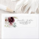 Ces étiquettes d'adresse de retour de romance florale sont parfaites pour un mariage élégant. Le design boho rustique moderne présente des fleurs d'aquarelle romantiques dans des tons doux de bordeaux, mauve, rose rousse et blanc crème avec des feuilles verts. Ces étiquettes peuvent être utilisés pour un mariage, une douche nuptiale, un événement spécial ou chaque fois que vous avez besoin d'un étiquette de adresse personnel.