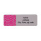 Ces étiquettes d'adresse de retour ont un design art déco de lignes verticales grises avec des lignes diagonales grises les reliant sur un champ de fuchsia.