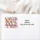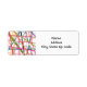 Ces étiquettes d'adresse de retour ont un design géométrique de lignes éparpillées dans les couleurs florales - les tons rose, orange, jaune, bleu et vert.