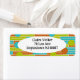 Ces étiquettes d'adresses de retour ont un design moderne du milieu du siècle de rectangles extensibles en vert citron, marron cannelle et turquoise avec des cercles superposés.