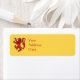 Ce dessin de Richard H. Fay présente un lion rampant, un lion rouge héraldique dépeint en profil remontant sur ses pattes arrières, prêt à déjouer tous les agresseurs. Un lion de ce type apparaît sur les bras royaux écossais.