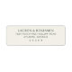 This elegant return address label design exudes a classic and timeless style, perfect for wedding stationery. The clean typography is sophisticated yet approachable, ensuring readability while maintaining an air of refinement. Set against a simple background with soft white tones, the minimalist aesthetic creates a serene and polished look. Ideal for couples looking to add a touch of understated elegance to their special day, this design seamlessly complements traditional or modern wedding themes alike.
